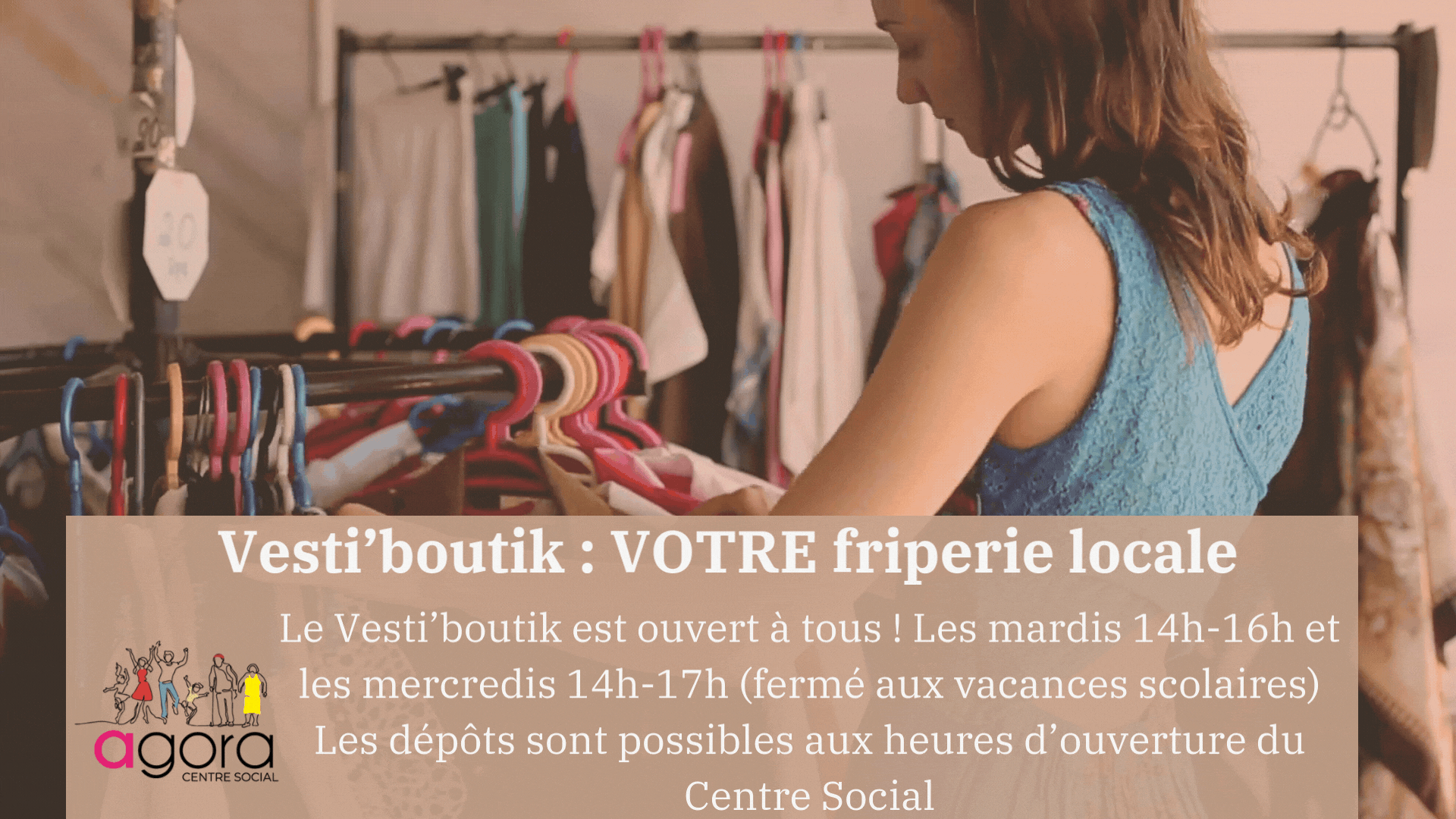 Le « Vesti’boutik » permet aux habitants du territoire de se procurer des vêtements. C’est un service d’entraide et de solidarité qui favorise l’économie sociale et solidaire sur notre territoire en redonnant une deuxième vie aux vêtements. Il est géré par des bénévoles du Centre Social.